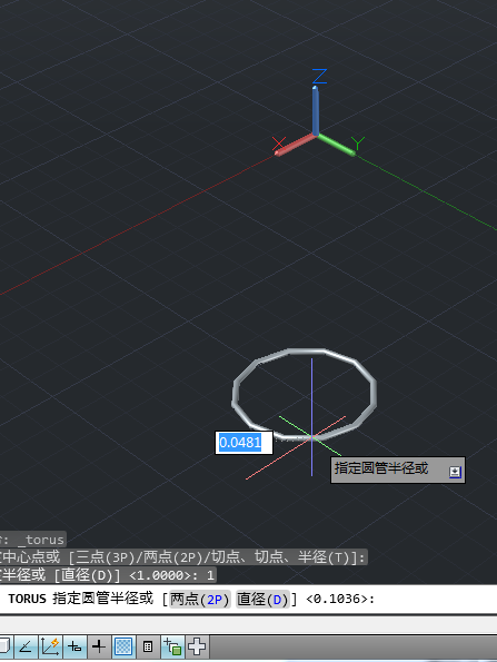 6、指定完圓管的半徑后,單擊鼠標左鍵,即可完成圓環的繪制,最終效果如圖。