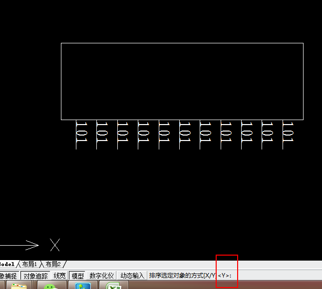 2、首先,將文字陣列。選中文字,點擊陣列工具。確定整列方向和數量。這里我需要1行多列,所以x=1,y=11。選擇整列的距離。我需要陣列的距離就是兩個管腳之間的距離。全部設置完成,點擊確定,就可以得到陣列效果。