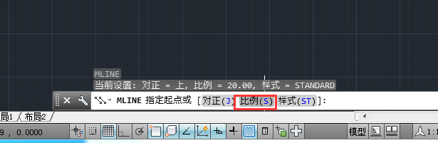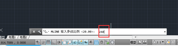 2、或者在命令行中輸入“ML”按回車,根據提示將線段比例設為240,將對正類型設為“無”。