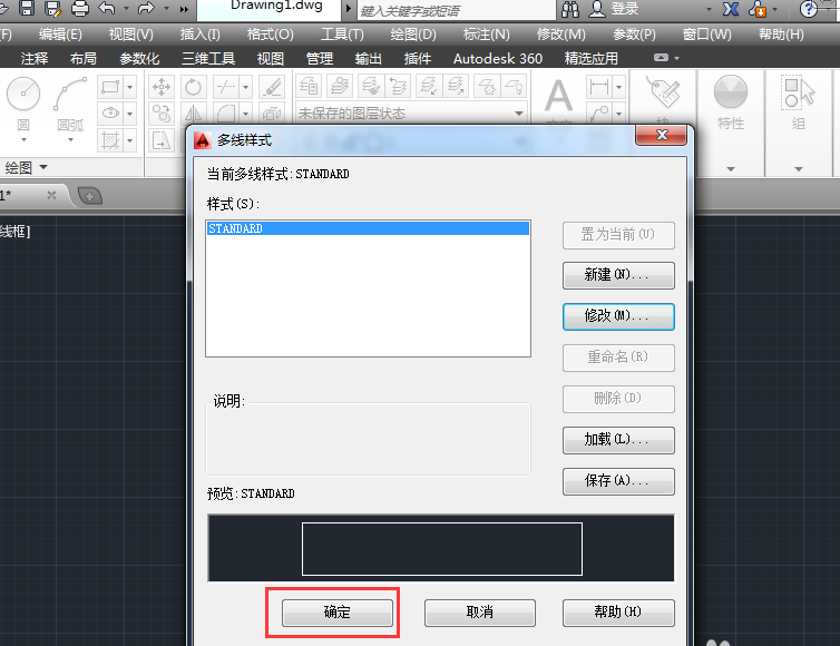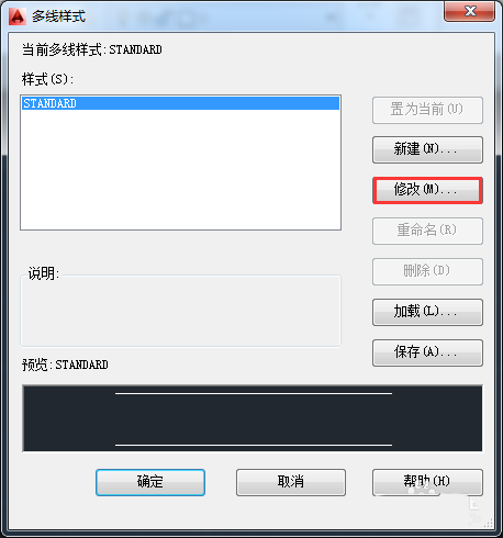 2、在彈出的【多線樣式】對話框中選擇【修改】按鈕。