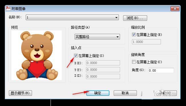 2、在彈出的【附著圖像】對話框中,單擊選中【在屏幕上指定】復選框,然后根據自己的實際需要,單擊屏幕上的任意位置,完成圖像插入。