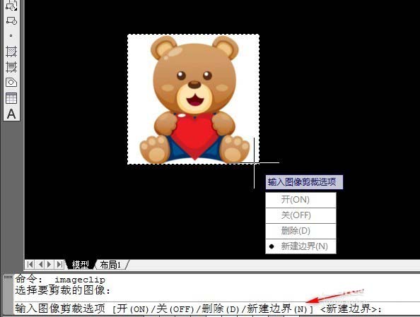 輸入圖像剪裁選項 [開(ON)/關(OFF)/刪除(D)/新建邊界(N)] <新建邊界>