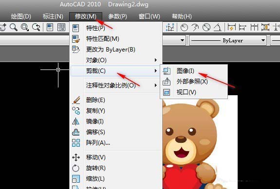 1、在菜單欄中依次選擇,【修改】-【裁剪】-【圖像】,屏幕上會出現小矩形框,用這個小矩形框選中要修剪的圖像。