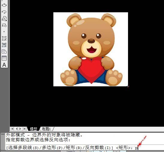 3、這里我們舉例多邊形(P)說明一下:在命令行中輸入“P”,單擊回車。這時命令行中會提示指定第一點,我們在圖上選擇一個位置指定。根據提示依次操作,最后得到修剪圖。