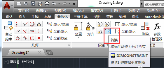 轉換約束可將已經標注的尺寸轉換為標注約束。