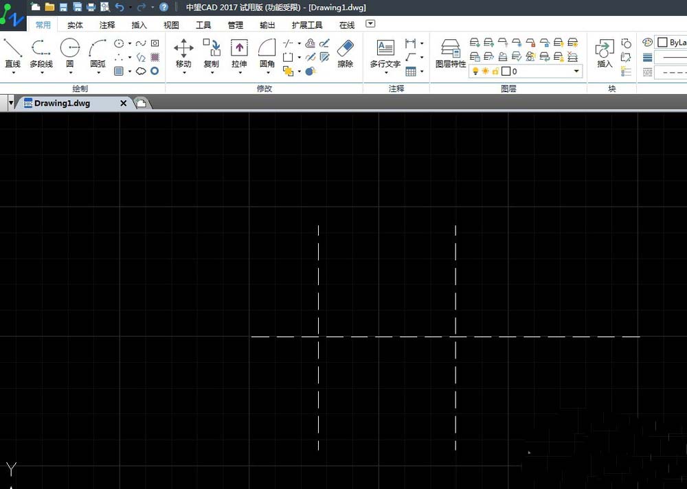 1、首先我們繪制的時候要先畫中心線,中心線要選擇虛線段繪制,在這里我們繪制的虛線中心點與中心點之間的距離我們選擇53mm