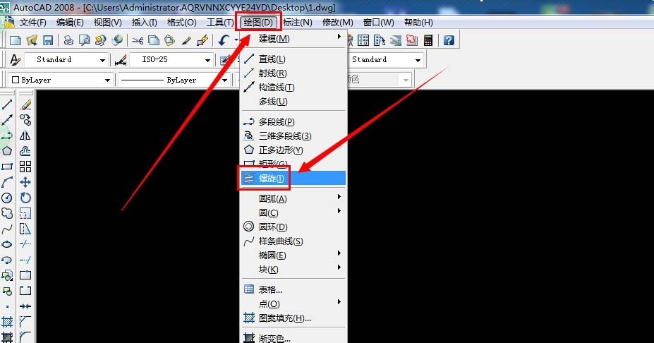 3、單擊繪圖之后在出現(xiàn)選項(xiàng),在單擊螺旋。