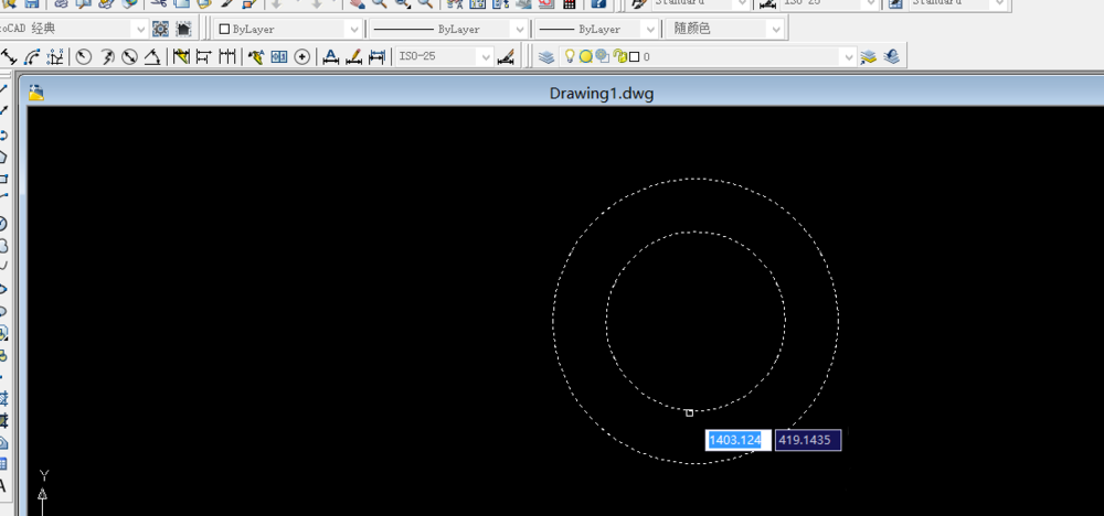 4、然后我們要點擊這個圖標來,創建面域(這兩個圓里面不可以有別的線條,否測面域不會創建成功)
