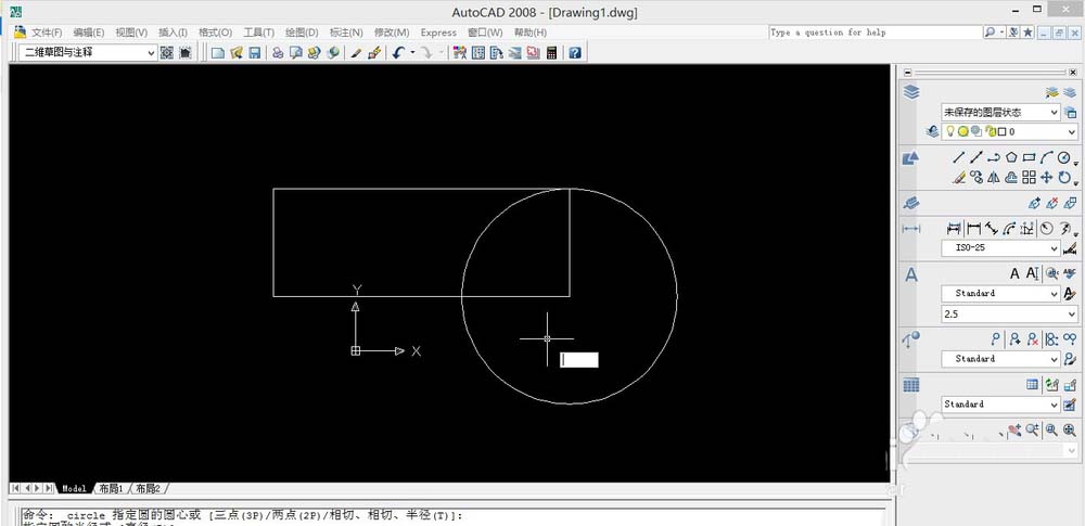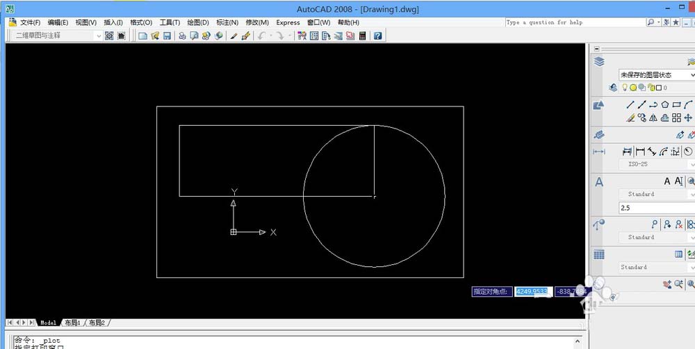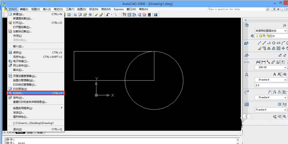2、打開要打印的圖形,我這里是隨便畫兩個(gè)圖形