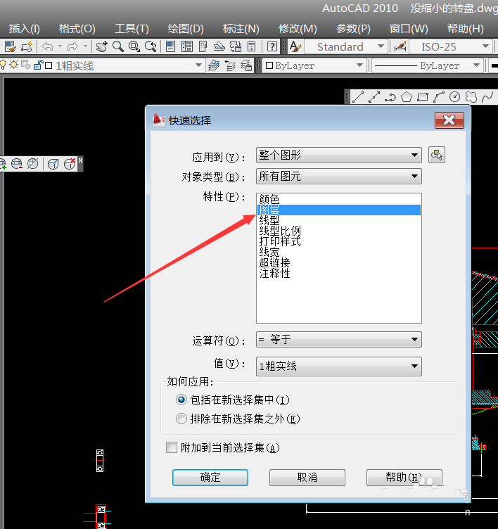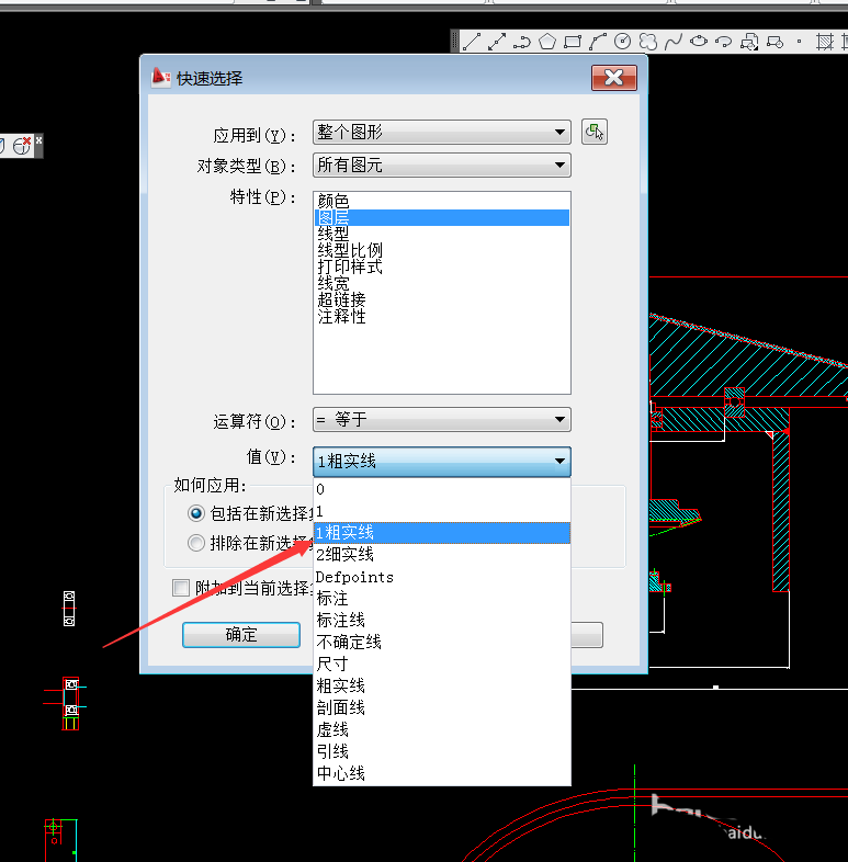 5、選擇你要選擇的圖層類型,比如粗實線,只能選擇一類。