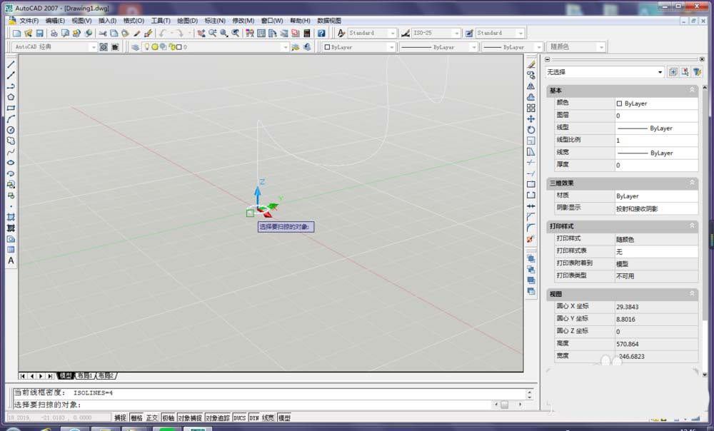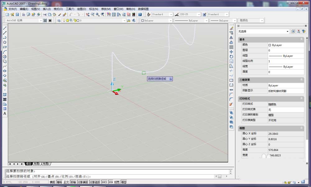5、選擇掃掠對象,回車。激活掃掠命令之后,需要首先選擇掃掠對象,這里選擇的是圓。