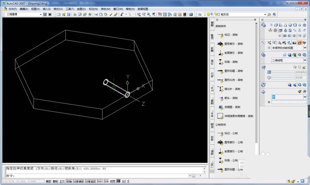 5、畫直徑為5,mm的圓。拉伸成圓柱,圓柱高50mm。