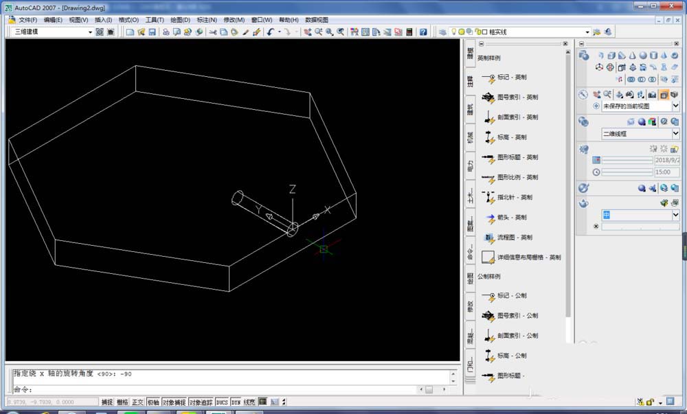 2)如下第二幅圖旋轉坐標系,即坐標系繞X軸旋轉90°。