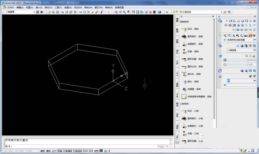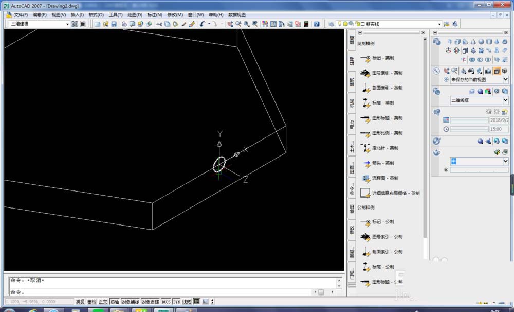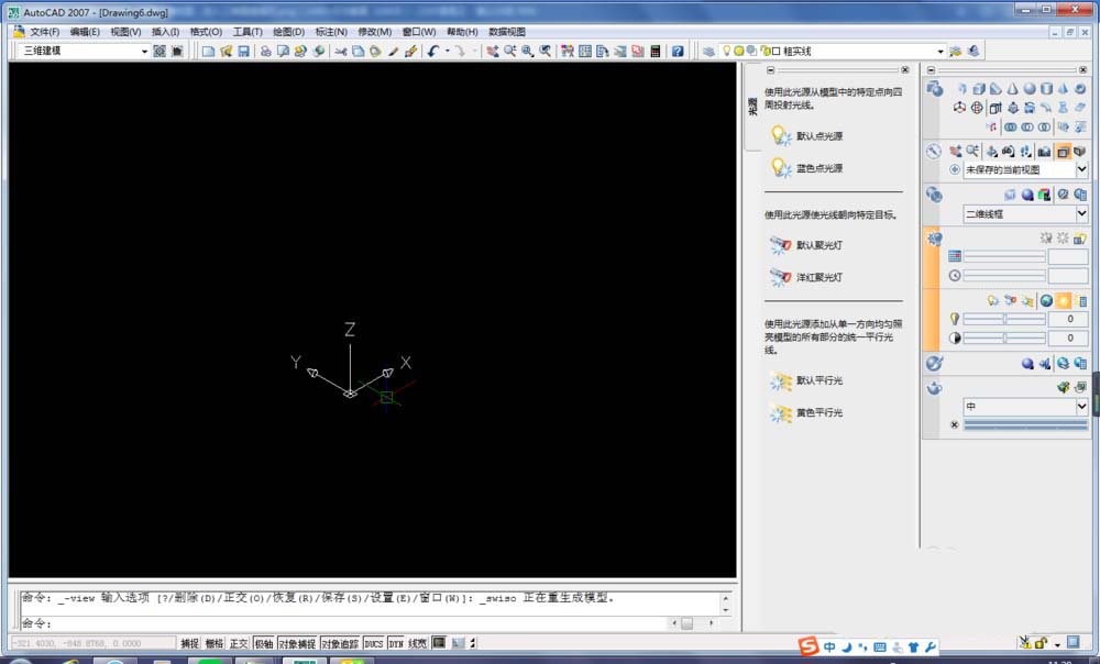 1、打開CAD,新建空白文件,將工作空間由經典模式改為三維建模模式,設置三維視口為等軸測視口。