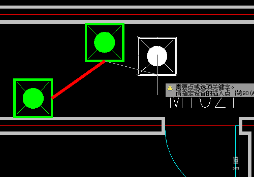 4、然后就可可以根據需要在圖形中點擊插入了。可以根據需要點擊選擇點擊自動連接導線,在繪制好第一個應急燈以后繪制第二個以后會自動連接導線。