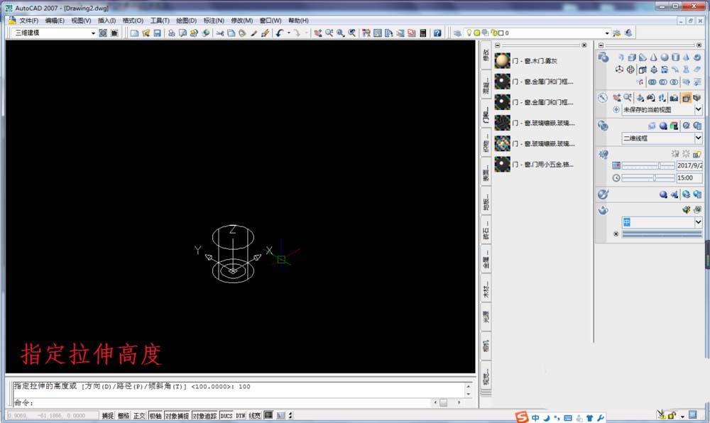 3)指定拉伸高度100,回車