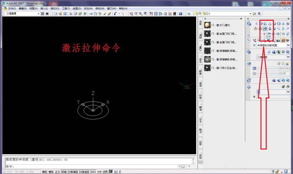 1)激活拉伸命令