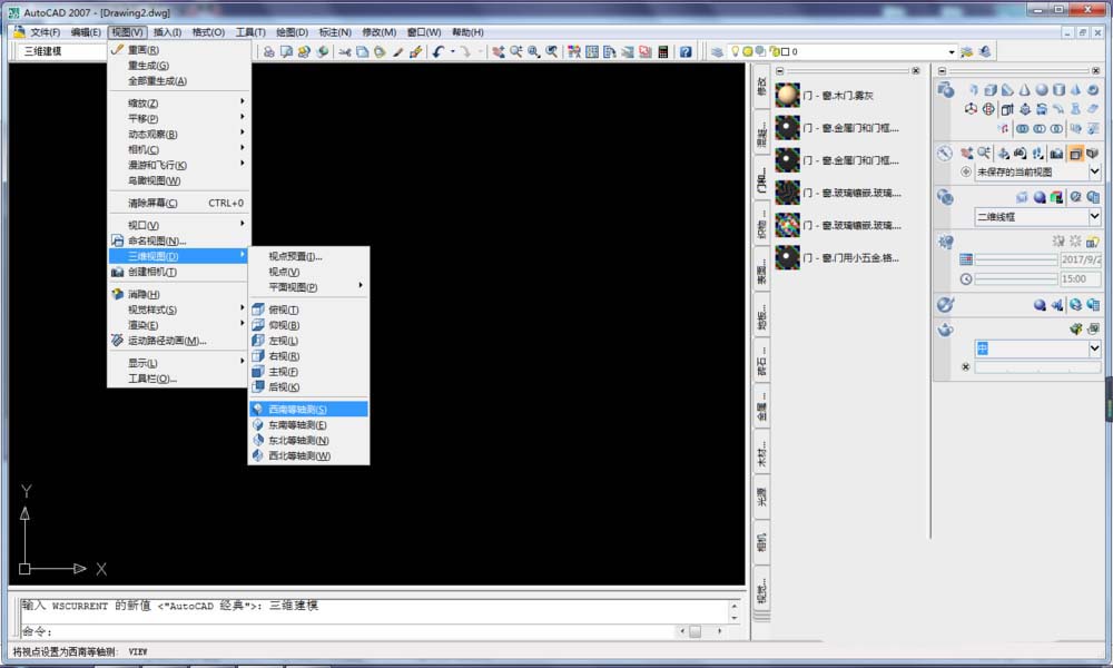 3、CAD墨水設定之后,將視口改三維視口。執行【視圖】-【三維視口】-【西南等軸側】,下面第二幅圖就是更改完畢的視口