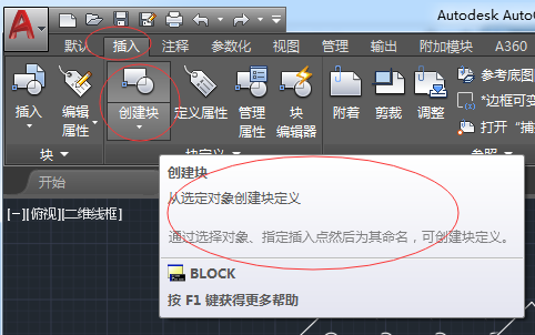 1、打開軟件,點擊上方工具欄中的:插入-創建塊。