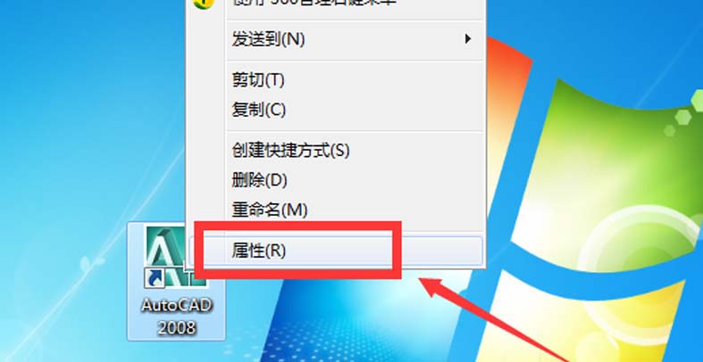 1、首先,在電腦桌面找到cad2008軟件快捷圖標,然后在快捷圖標進行鼠標右鍵——屬性——打開文件所在的位置,找到cad2008軟件的安裝程序,如圖