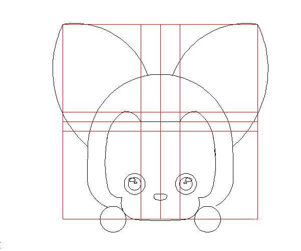 9、用兩個(gè)同心圓以及兩個(gè)小橢圓畫(huà)阿貍的眼睛,鼻子可以用圓弧來(lái)構(gòu)造。最后鏡像過(guò)去,阿貍的眼睛鼻子也畫(huà)完了。