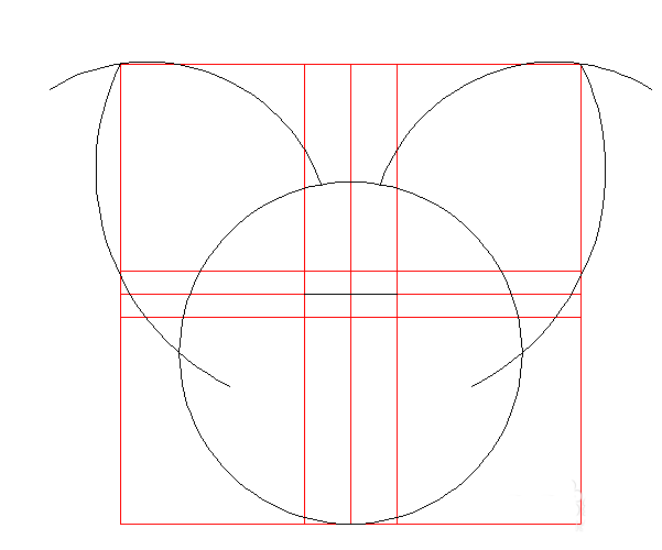 2、以圖中紅點(diǎn)位置為圓心畫(huà)圓(圓主要是為了確定阿貍的大腦袋的位置)