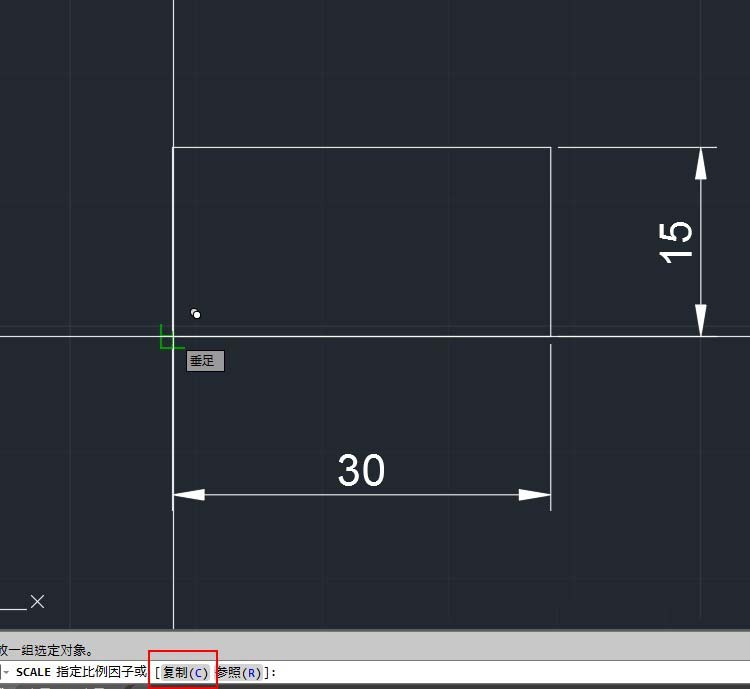 3、點(diǎn)擊指定縮放基點(diǎn),并點(diǎn)擊下方命令框中的*復(fù)制*