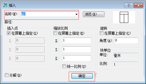 5、插入塊窗口,點(diǎn)擊瀏覽你寫入的塊,插入點(diǎn)選為在屏幕上指定,如果你需要塊旋轉(zhuǎn)在旋轉(zhuǎn)角度輸入角度。點(diǎn)擊確定。
