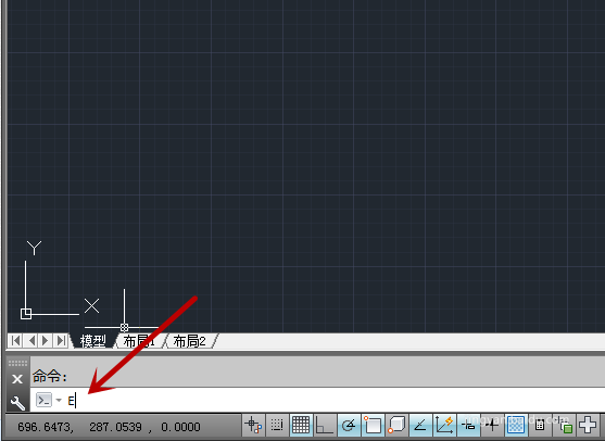 3、之后我們在最下方的命令區域,輸入快捷鍵“E”,如圖所示。
