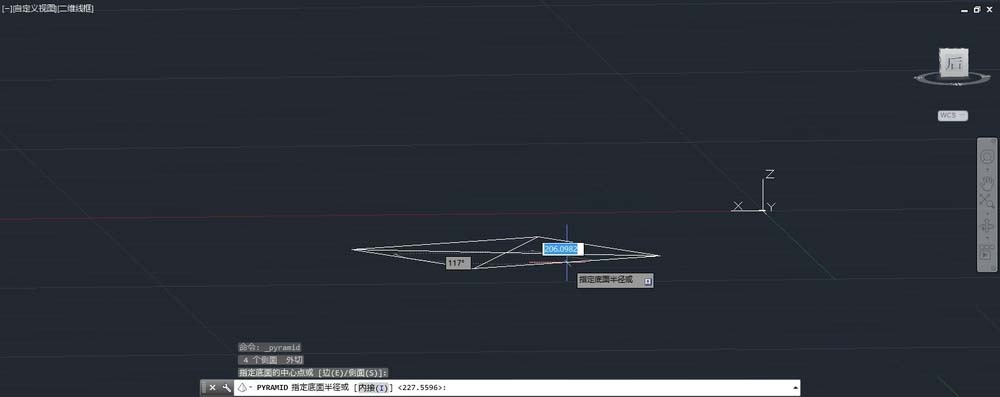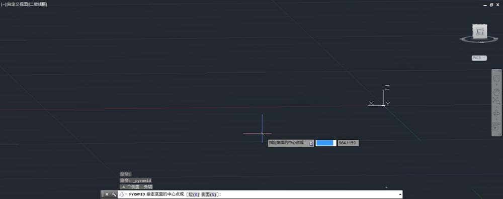 4、然后我們需要選擇棱錐體的底面中心。(這里是三維的坐標,也可以分別輸入x,y,z的數值確定坐標)