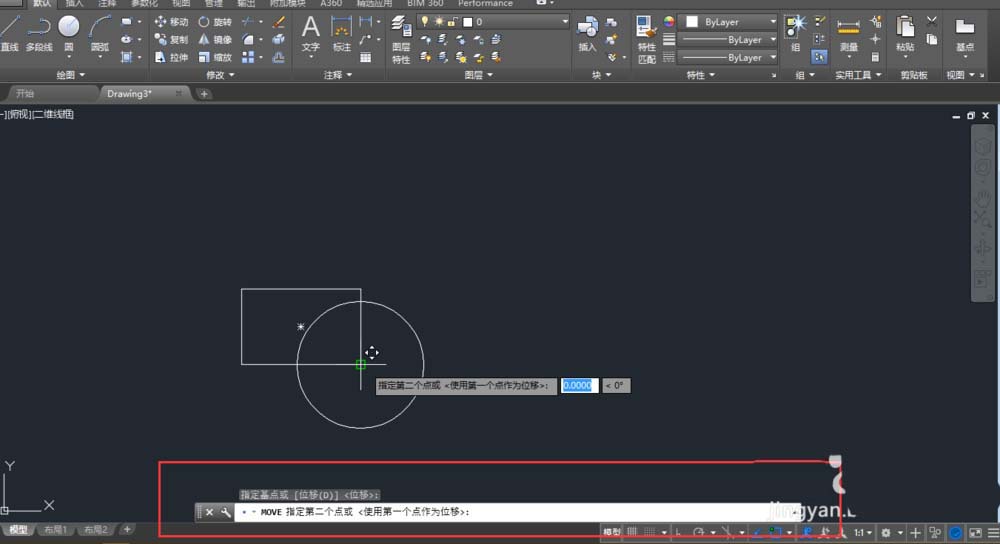 5、移動對象就完成了(在CAD操作過程中,信息欄都有提示,初學者可以多看下信息欄)。