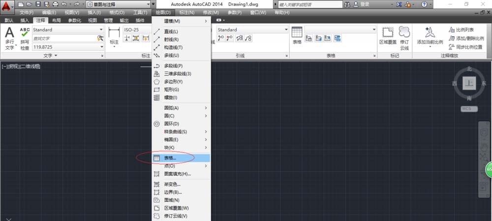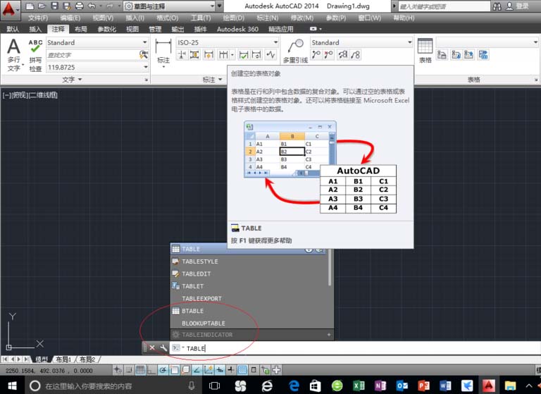 8、點擊"注釋→表格"功能區,選擇"表格"圖標執行創建表格的操作。
