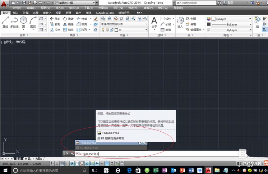 4、在命令提示窗口輸入"TABLESTYLE"命令,進行表格基本形狀和間距的設置。