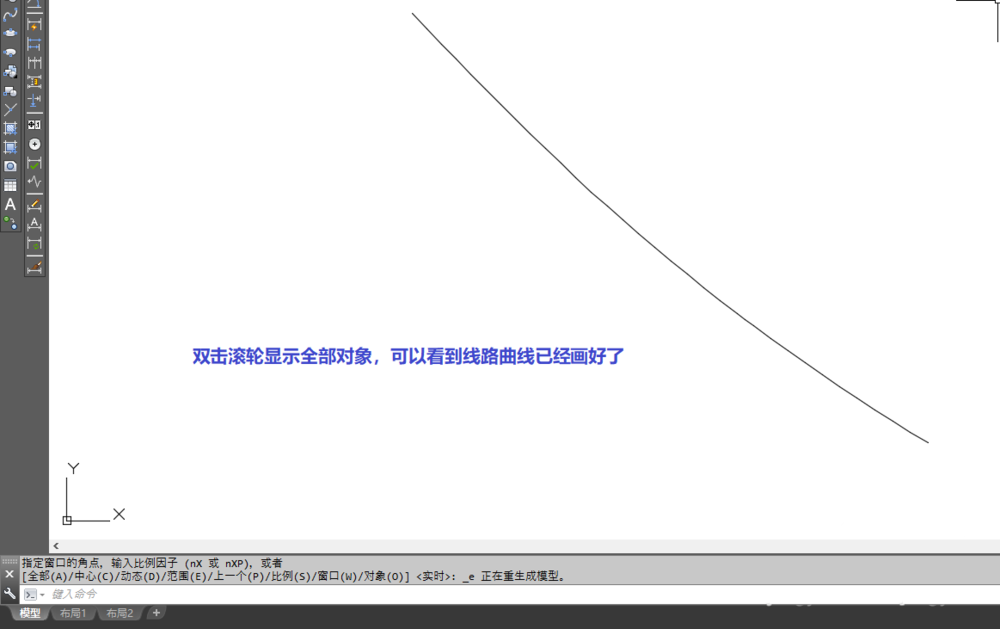 6、雙擊滾輪顯示全部對象,可以看到曲線已經畫好了