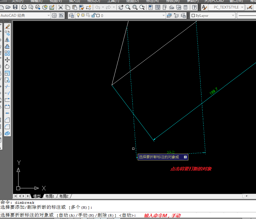 2、選擇將要打斷的標(biāo)注線,單擊選擇;