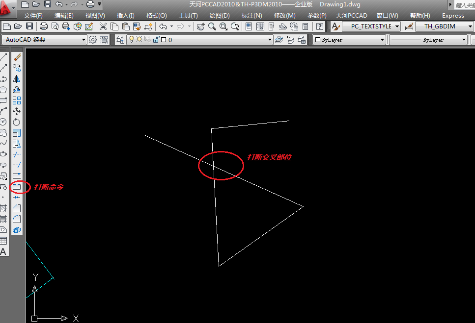 1、將交叉部位打斷,直接選擇"打斷”命令,如圖: