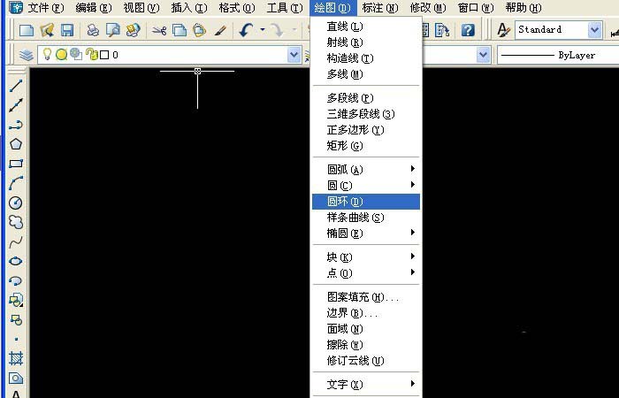 5、清除畫布上的線,接著,鼠標(biāo)左鍵單擊菜單下的【繪圖】>>【圓環(huán)】,如下圖所示。