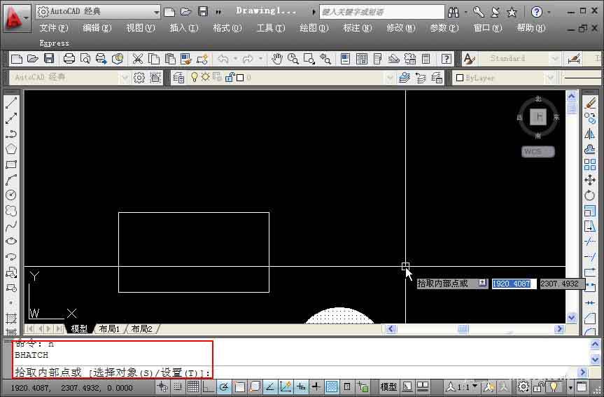 當然有!AUTOCAD也考慮到用戶的這種需求,同時也考慮到功能區面板被關閉的狀態下(例如按CTRL+0全屏顯示后用戶如何設置填充參數),因此提供了一個控制填充對話框顯示形式的變量:HPDLGMODE。這個變量可以設置成0,1,2三個數值,我們就來看看設置成三個值的效果。
