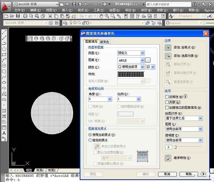 1、在 2015版之前,AUTOCAD還保留了經典界面,在經典界面中調用填充命令時是會彈出填充對話框的,如圖所示。
