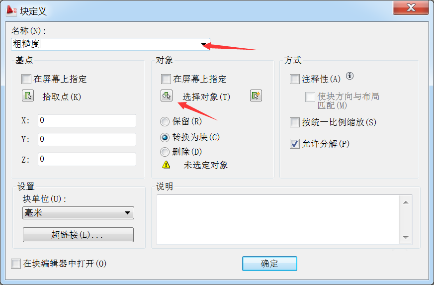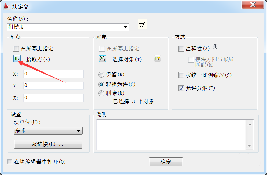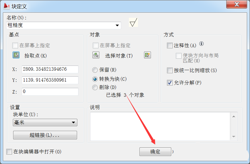 8、全部設(shè)置好之后就點(diǎn)擊確定就可以了。塊就創(chuàng)建好了。