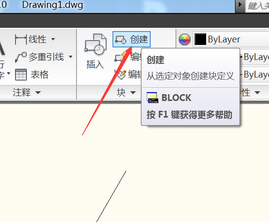 3、在塊功能區(qū),點(diǎn)擊創(chuàng)建。