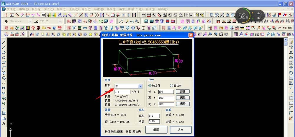 cad圖紙中想要計算出鋼質(zhì)材料的重量,以及它的金額。該怎么計算呢?下面我們就來看看詳細的教程。