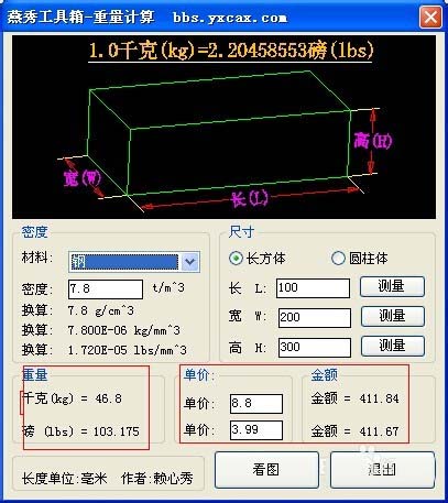 5、我們可以根據(jù)各種參數(shù)計算出鋼料的重量以及金額了。如圖所示: