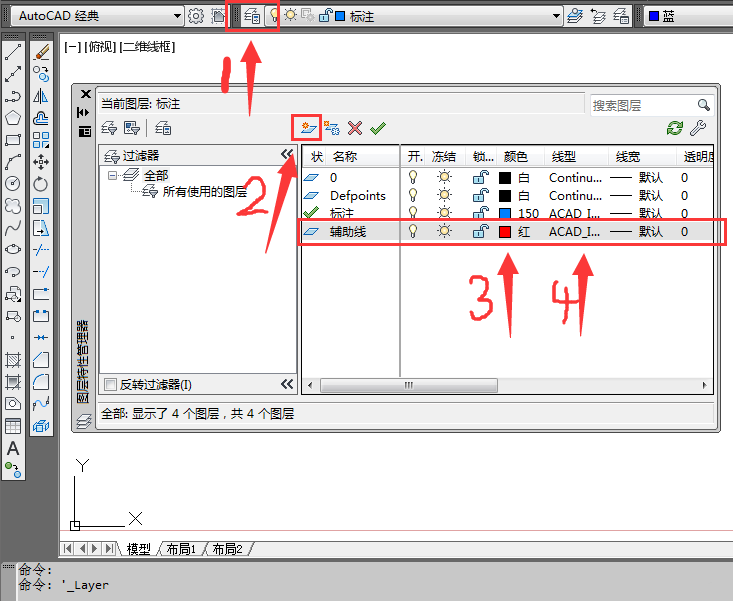 2、新建輔助圖層。既然是輔助線,所以新建一個輔助線圖層。點擊圖層管理器,點擊新建圖層,選擇線性顏色(隨意,與主圖層區分開來就好),點擊線性加載并應用