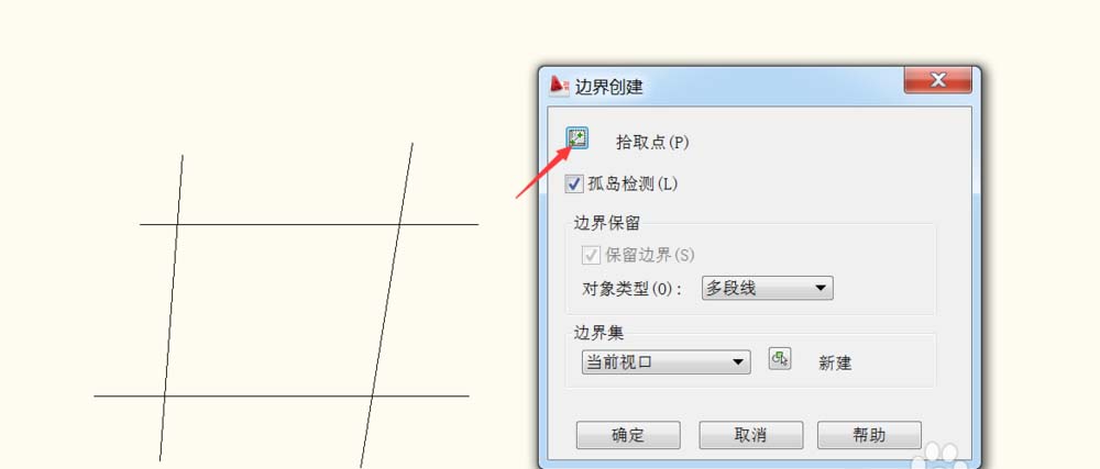 4、然后點擊內部拾取點,在封閉空間內部隨便點擊一下。