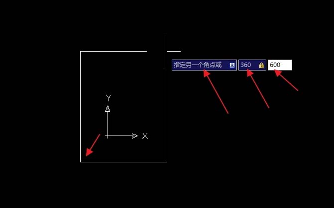 2、在二維繪圖界面下繪制鏡面基本框架形狀,用矩形工具繪制,點擊界面并輸入參數,得到600x360的矩形框。
