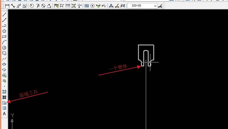 4、下來使用工具面域工具或reg快捷命令制作面域,使剛創建的截面為一個整體面域。