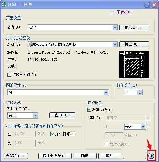 7)點擊窗口按鈕,框選要打印的圖紙范圍。