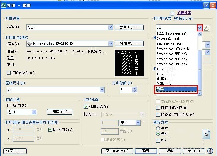 3、點擊打印樣式表中的下箭頭,在下拉列表的最后找到”新建…“,點它,就到了本文的重點:打印樣式表設置
