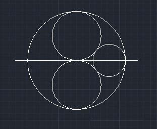 8、在“繪圖-圓”子菜單下選擇“相切、相切、半徑(T)”命令,捕捉左側二個圓的切點,在“指定圓的半徑:”提示下,輸入半徑值為26.67,并按回車鍵結束,從而繪制左側的小圓對象。